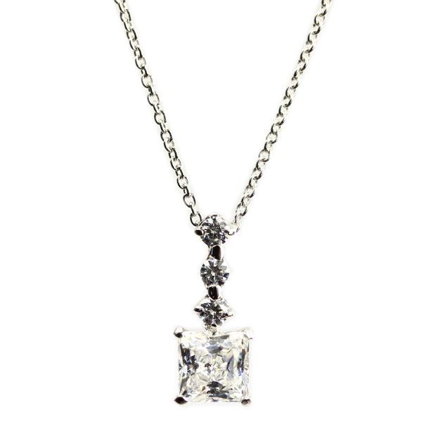 プリンセスカットのCZがポイントのエレガントなネックレス。オフィススタイルにもピッタリのアイテムです。シルバー925にロジウムコーティングを施しているので変色しにくくお手入れも簡単にできます。C-BA STYLE専用のボックスとショッパーも付属しているので記念日・誕生日などギフトにピッタリです。
