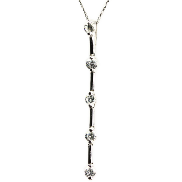 シンプルなステーション型のネックレス。5粒のCZが煌めくエレガントなラインネックレスです。シルバー925にロジウムコーティングを施しているので変色しにくくお手入れも簡単にできます。C-BA STYLE専用のボックスとショッパーも付属しているので記念日・誕生日などギフトにピッタリです。