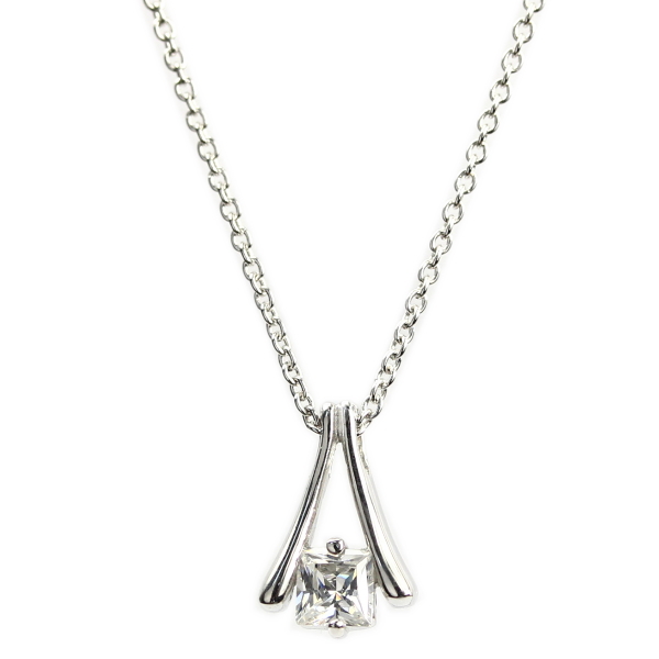 シンプルでエレガントなネックレス。プリンセスカットのCZがポイントです。シルバー925にロジウムコーティングを施しているので変色しにくくお手入れも簡単にできます。C-BA STYLE専用のボックスとショッパーも付属しているので記念日・誕生日などギフトにピッタリです。