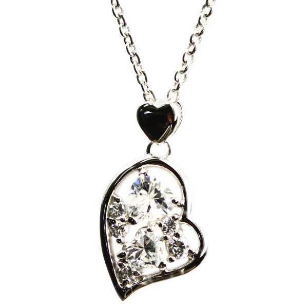 ハートの中に様々なカットのCZをセットしたジュエルのようなネックレス。シルバー925にロジウムコーティングを施しているので変色しにくくお手入れも簡単にできます。C-BA STYLE専用のボックスとショッパーも付属しているので記念日・誕生日などギフトにピッタリです。