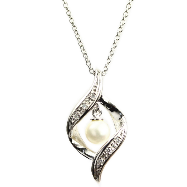 エレガントなパール(淡水)と側面にCZをあしらったネックレス。ちょっとしたフォーマルにも最適なネックレスです。シルバー925にロジウムコーティングを施しているので変色しにくくお手入れも簡単にできます。C-BA STYLE専用のボックスとショッパーも付属しているので記念日・誕生日などギフトにピッタリです。