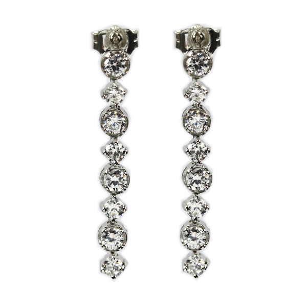 綺麗なラインが耳元で揺れるエレガントなピアス。大きさが異なるCZがポイントです。シルバー925にロジウムコーティングを施しているので変色しにくくお手入れも簡単にできます。C-BA STYLE専用のボックスとショッパーも付属しているので記念日・誕生日などギフトにピッタリです。