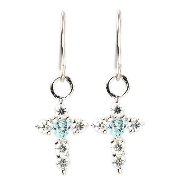 定番人気のクロスの中央にはハートカットのブルーCZがセットされており、更には裏面もハートが刳り貫かれた見えない部分にもこだわったピアスです。シルバー925にロジウムコーティングを施しているので変色しにくくお手入れも簡単にできます。C-BA STYLE専用のボックスとショッパーも付属しているので記念日・誕生日などギフトにピッタリです。