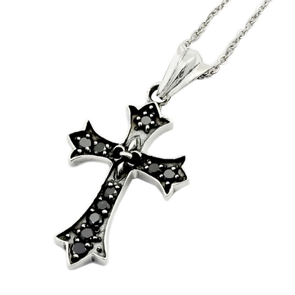シンプルなクロスがスタイリッシュなRoyal Jokerリリークロスペンダント。リリーとは百合をさします。クロス部分にはブラック燻しを施しブラックCZ(キュービックジルコニア)をセットし、中央の百合の紋章を際立たせています。本物のシルバーだから出せる質感が堪能できるアイテムです。専用のケースが無料で付属するので、プレゼント・ギフトにとってもオススメです。