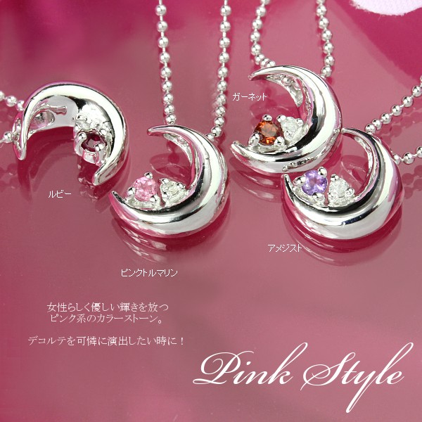 月に願いを込めて!妖艶な三日月に天然石とダイヤモンドがさりげなく大人の魅力を引き立てる、とってもセクシーなムーンネックレス!12誕生石から自分の好きな石をチョイス出来ちゃうペンダントで、大人なコーデからキュートな小悪魔コーデまで!合わせ方次第で様々な印象の胸元を演出してくれるとっても優秀なムーンペンダント。プレゼント・ギフトにとってもオススメ!