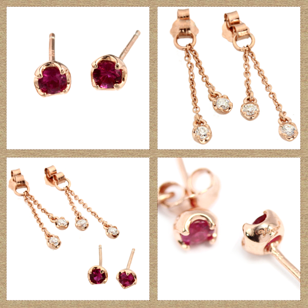 ■サイズ 約4×4mm チェーン(キュービックジルコニア含)[長]約20mm、[短]15mm(キュービックジルコニア含) / ルビー直径約3mm / キュービックジルコニア直径約2mm×2コ / ポスト約11mm