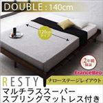 すのこベッド ダブル【Resty】【マルチラススーパースプリングマットレス付き:幅120cm:ナローステージレイアウト】 ダークブラウン デザインすのこベッド【Resty】リスティー