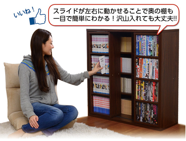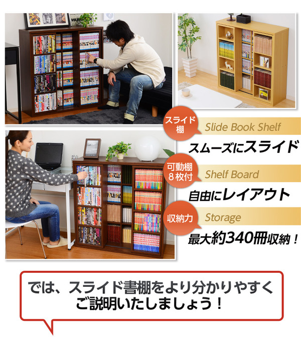 スライド書棚 スライド本棚 本収納 スライド式 コミック収納 DVDCD収納 マンガ収納に♪