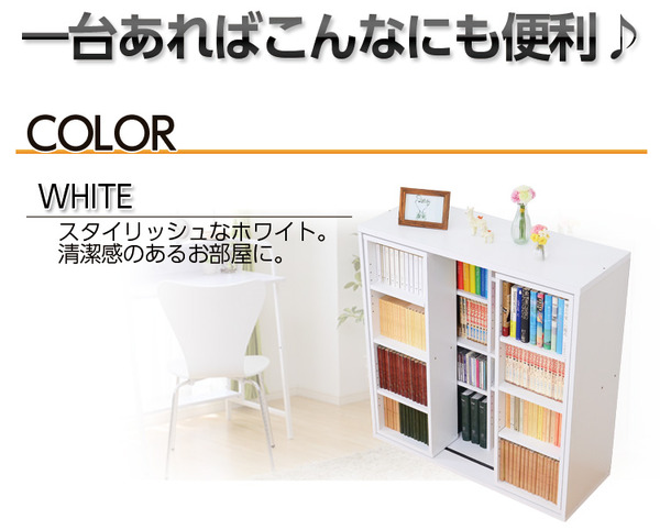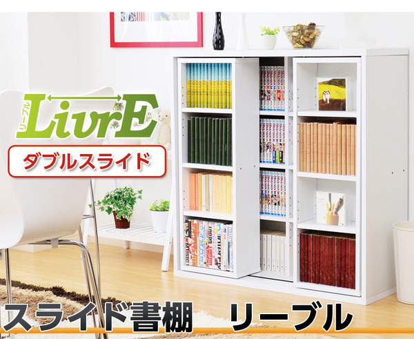 - スライド書棚【-Livre-リーブル】(ダブルスライド・深型タイプ) ホワイト