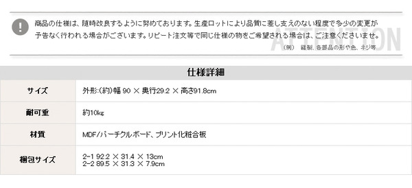 外寸:(約)幅90×奥行き34×高さ91.8cm