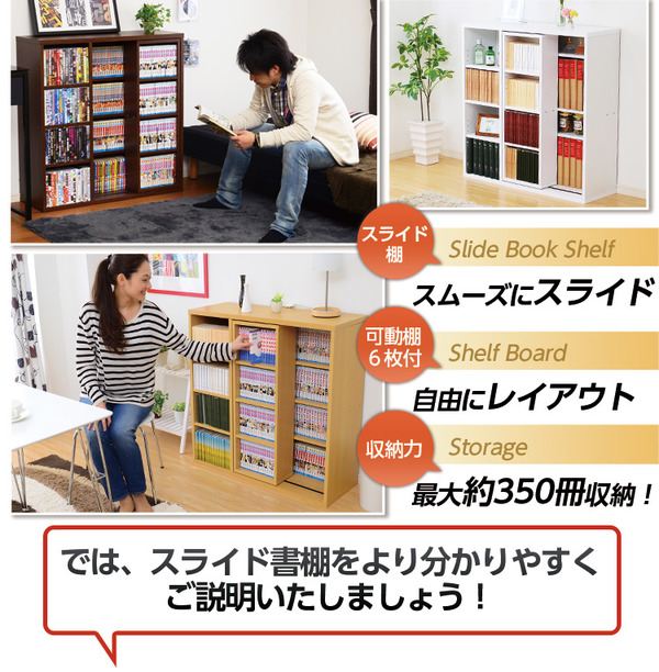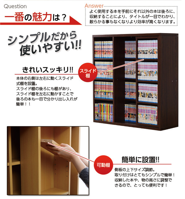 スライド書棚 スライド本棚 本収納 スライド式 コミック収納 DVDCD収納 マンガ収納に♪