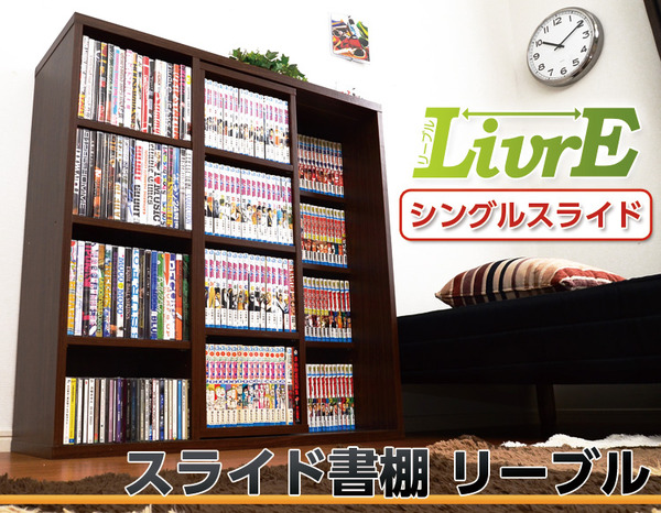 - スライド書棚【-Livre-リーブル】(シングルスライド・浅型タイプ) ダークブラウン